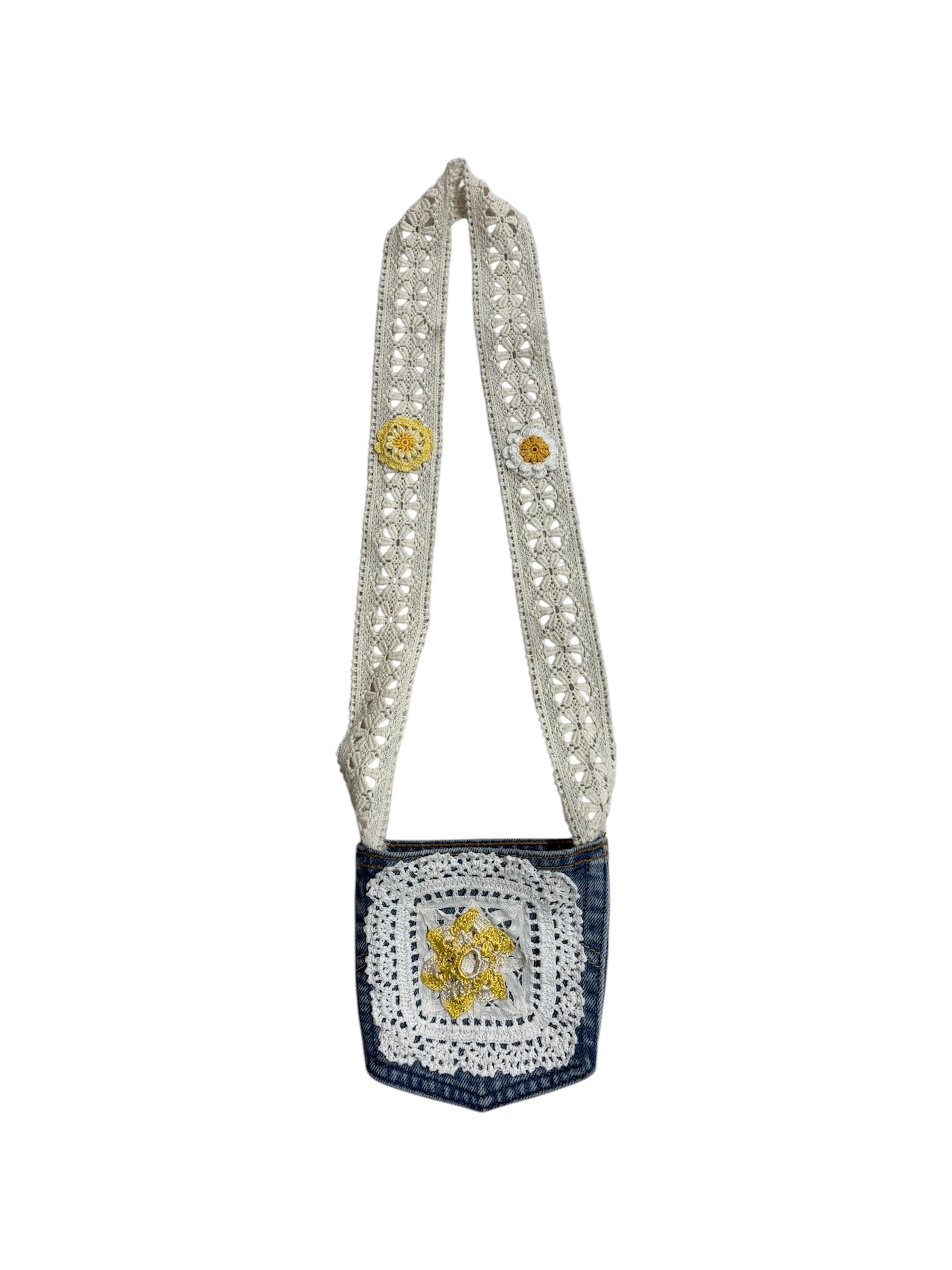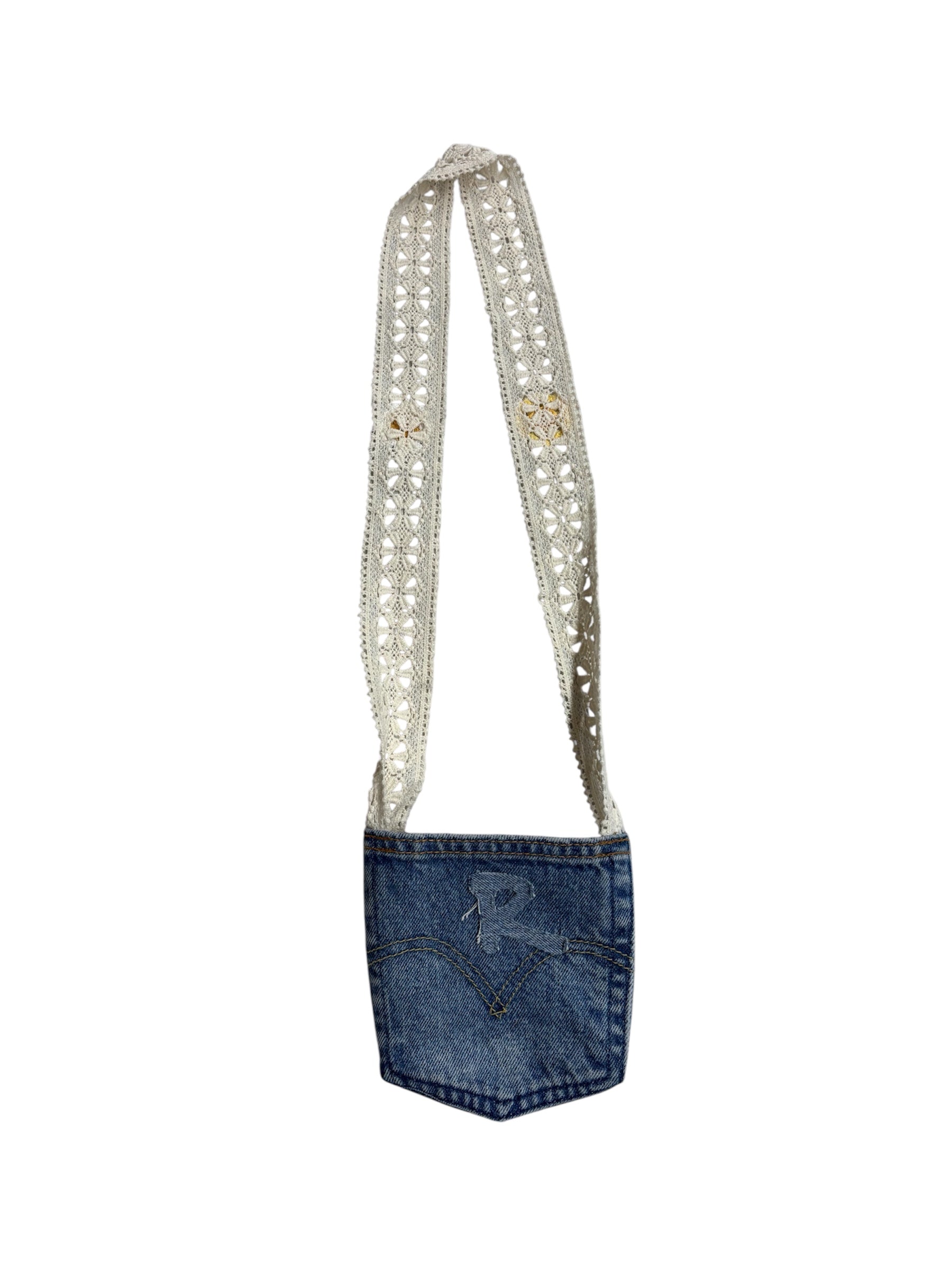 Cut from vintage denim pockets. Small in scale, pared back in form.